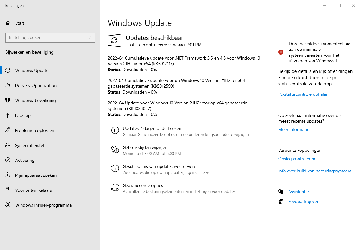 April beveiligingsupdate KB5012599 voor Windows 10 21H2