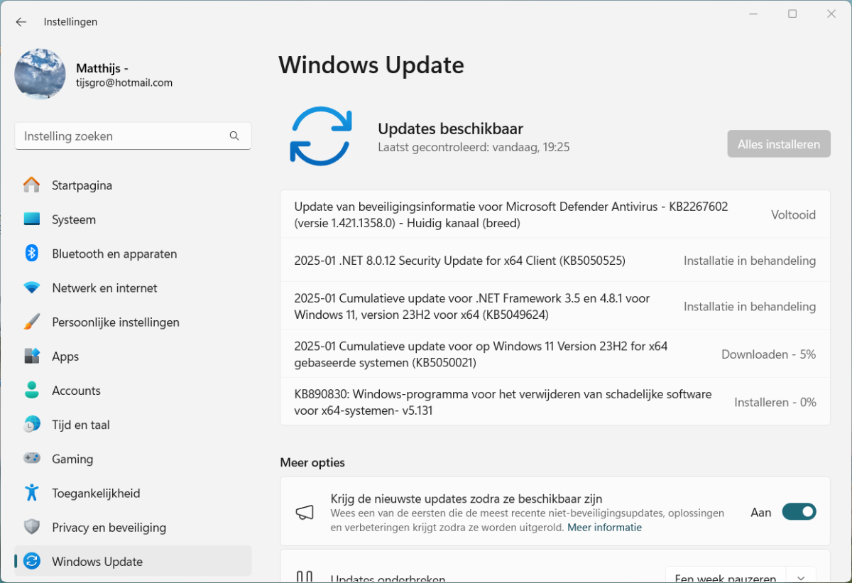 .NET framework 3.5 en 4.8.1 en versies 6 en 8 van .NET (mocht je die op je pc hebben staan) kunnen ook updates krijgen.
