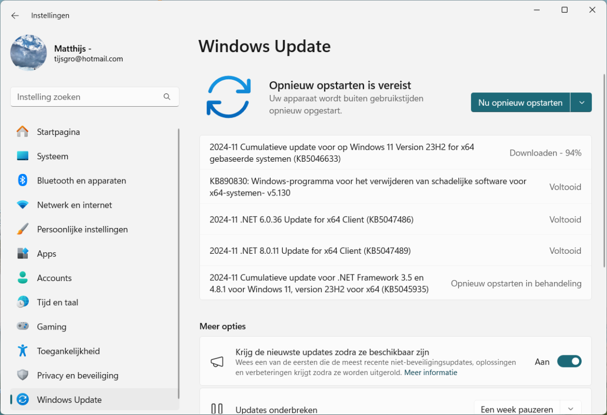 .NET framework 3.5 en 4.8.1 en versies 6 en 8 van .NET (mocht je die op je pc hebben staan) krijgen ook updates. Onder andere KB5045935 (Windows 11 23H2) is verschenen.