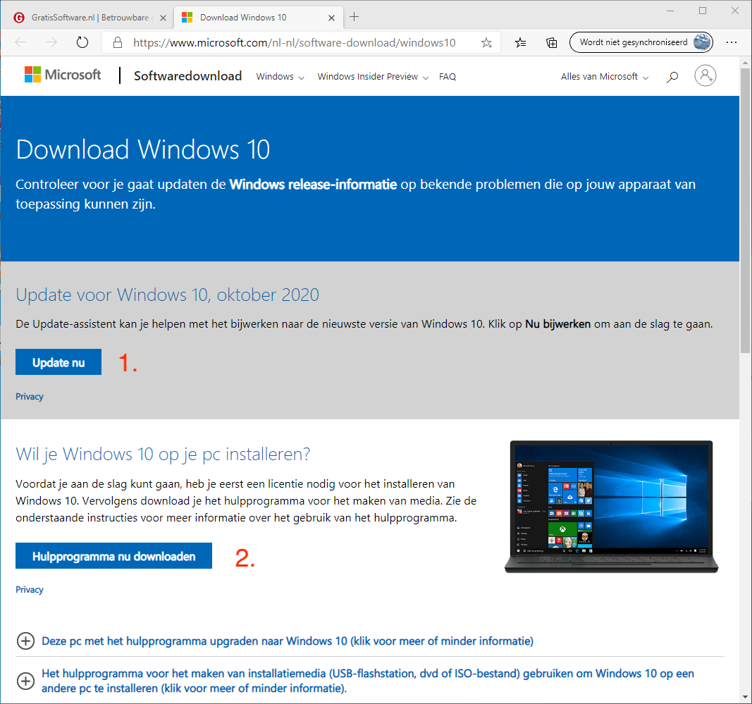 2. Binnenhalen met Update-assistent (of Media Creation Tool)