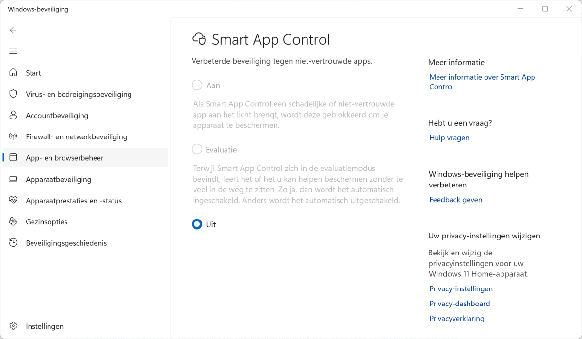 Maart preview update Windows 11 zorgt ervoor dat je smart app controle gelijk aan of uit kunt zetten