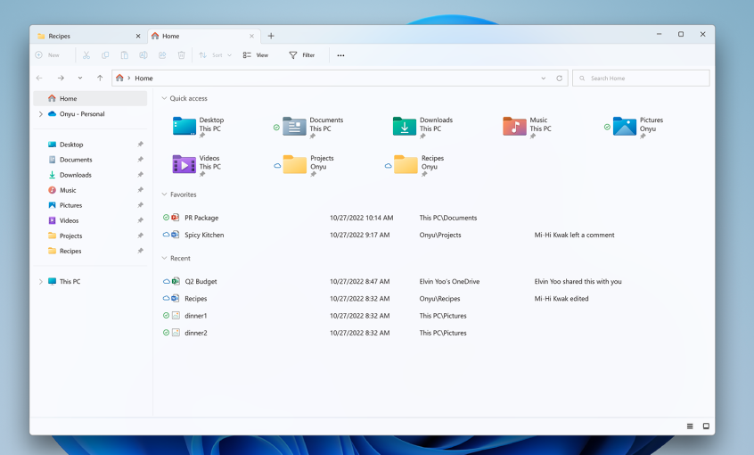 En dan gooien ze gelijk aan de linker kant Thuis ook om moet je daar weer aan wennen, nu staat Onedrive bovenaan in plaats van Downloads.