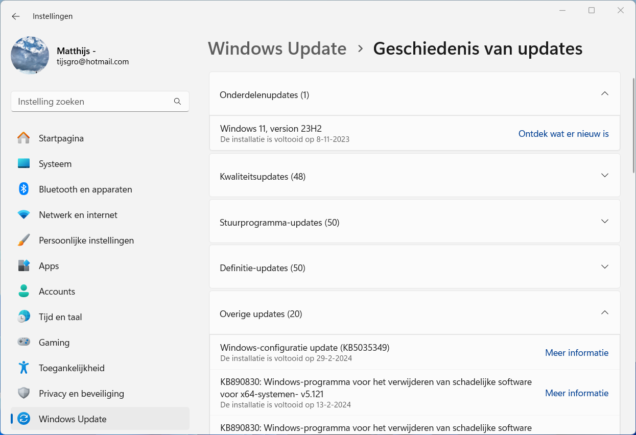 Instellingen | Windows Update | Geschiedenis van updates - Overige updates