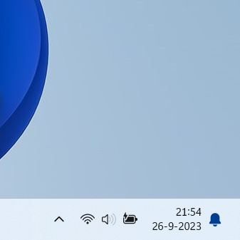 - Als er meldingen zijn in het systeemvak dan wordt het bel-icoontje opgevuld met een kleur: