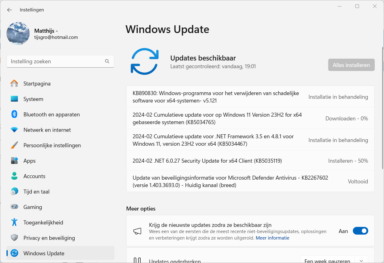 Erg fijn dat auto install van al die updates in win 10/11.. Not!
