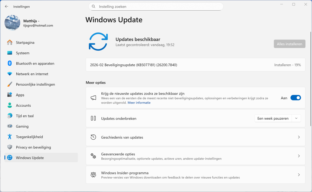 De maandelijkse beveiligingsupdates verschijnen elke tweede dinsdag van de maand voor Windows 10 en 11. Deze updates worden automatisch geïnstalleerd.