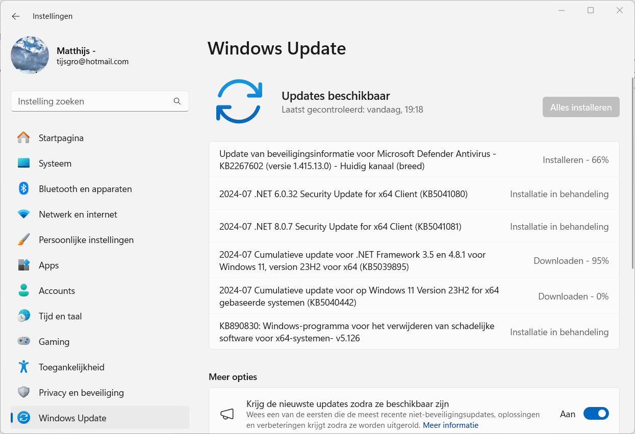 De Windows 11 updates waren inderdaad best snel geinstalleerd, ik denk een minuut of zes, mijn reserve pc (Win 10) deed daar een stuk langer over,verder geen enkel probleem.