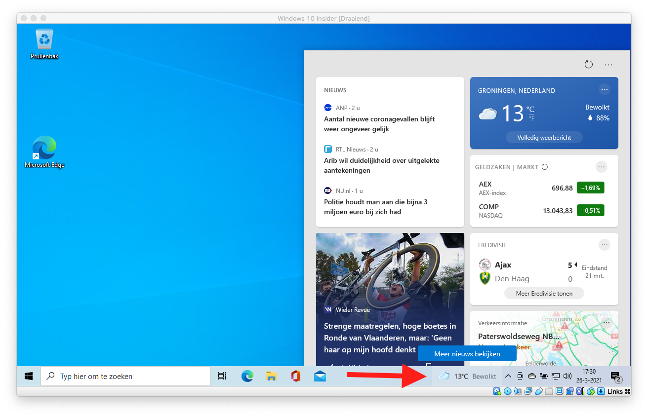 2. Nieuws en weer in de taakbalk met weerbericht voor je locatie, nieuws, verkeersinformatie, sportuitslagen en meer