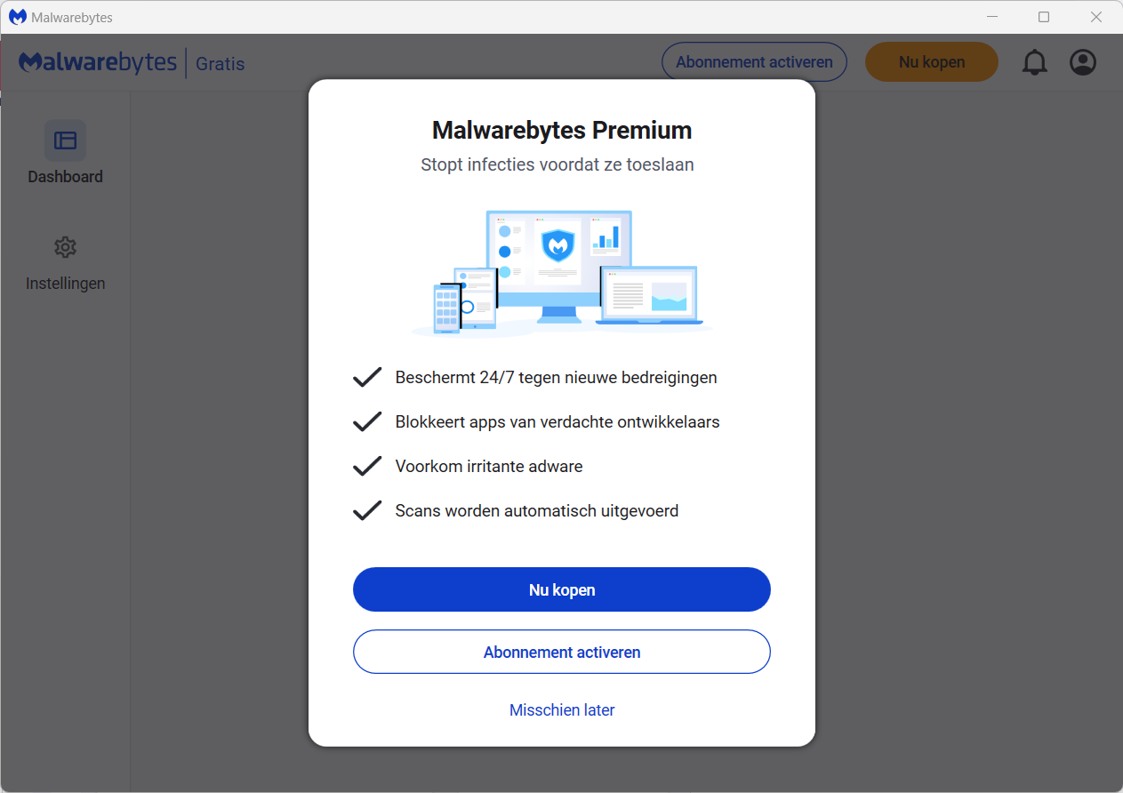 Klik op Misschien later voor de gratis versie