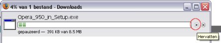 Een veelaangevraagde verbetering in Firefox 3 is dat de downloadmanager nu downloads kan pauzeren en hervatten. Dus als u Firefox 3 afsluit voordat een download afgerond is kunt u na het herstarten de afgebroken download weer hervatten en voltooien.