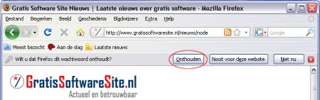 Het wachtwoordbeheer is ook vergemakkelijkt. Vroeger werd een wachtwoord opgeslagen voordat u daadwerkelijk ingelogd was. Als u dan per ongeluk een foutief wachtwoord had opgegeven werd dit ook onthouden. Nu kunt u nadat u ingelogd bent (en dus weet dat het wachtwoord juist was) aangeven of u een gebruikersnaam en wachtwoord wilt laten onthouden. Wel zo handig. In tegenstelling tot Firefox 2 geeft Firefox 3 bovenaan de pagina een balkje weer voor de wachtwoord-opties.