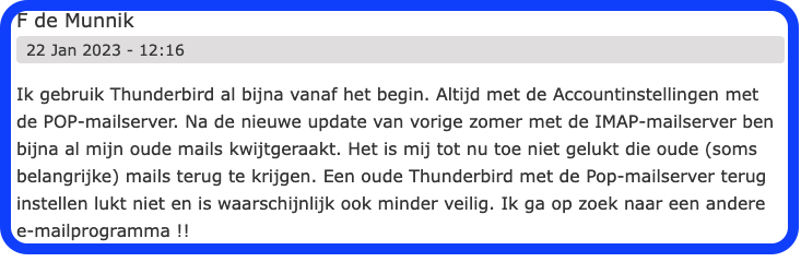 Ja maar F de Munnik had ook al eerder een bericht geplaatst (bij de Thunderbird pagina), daar doelde ik op: