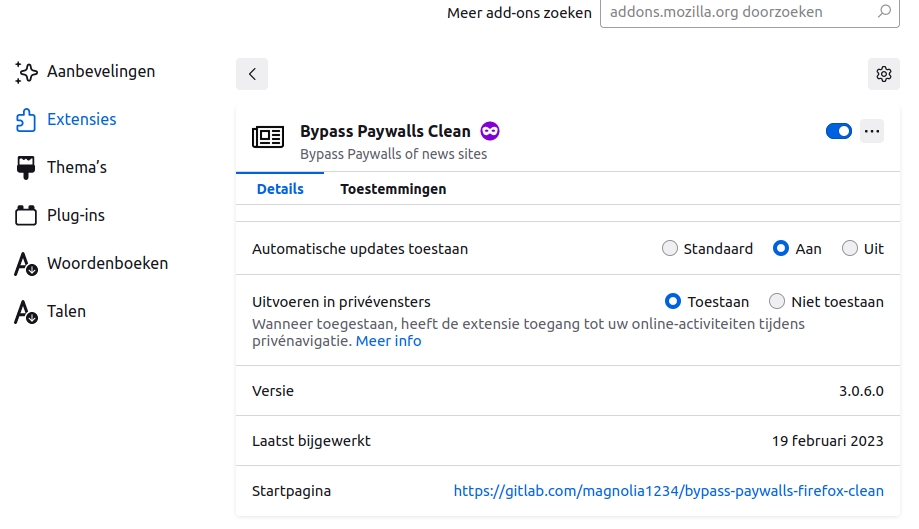 Sinds een aantal dagen werkt Bypass Paywalls Clean niet meer voor De Telegraaf. Maar de oplossing is simpel: