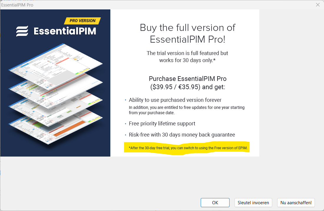 EssentialPIM nog gratis?