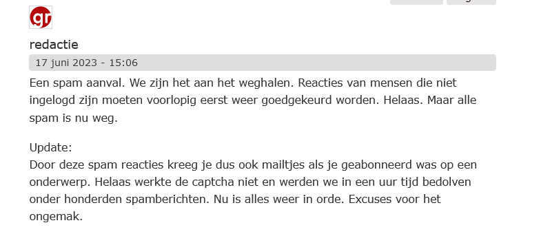 We hebben nu weer een wachtrij voor goedkeuring van reacties ingesteld zodat er geen spamberichten meer tussen door kunnen komen.