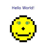 Als een internet browser voldoet aan al deze webstandaarden dan wordt een eenvoudig plaatje van een lachende smiley met de tekst Hello World correct weergegeven zoals hieronder. Anders niet. Het lijkt simpel, maar u zult schrikken van sommige resultaten. En duidelijk wordt dat Microsoft niet van smileys houdt...