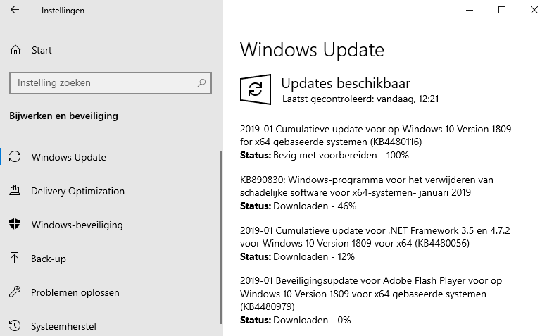 Vreemd veoeger kwamen de updates binnen bv als je ging afsluiten of je kreeg een melding met het verzoek opnieuw opstarten de laatste updated kwamen bij mij "stil"binnen, heeft dat te maken met de laatste versie 1809?