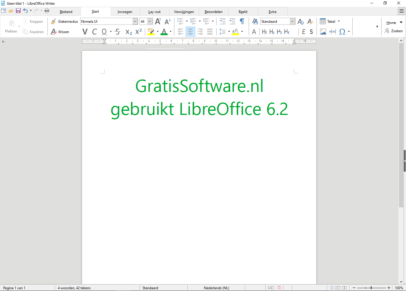 LibreOffice 6.2 met tabbladen-werkbalk (klik voor groter)