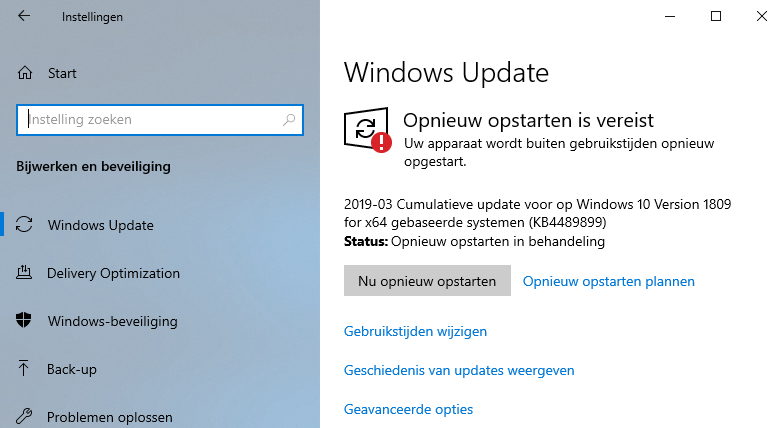 De Update KB4489899 wordt wel gedownload, maar bij installatie op 100% wordt de mededeling gegeven Installatie Mislukt.