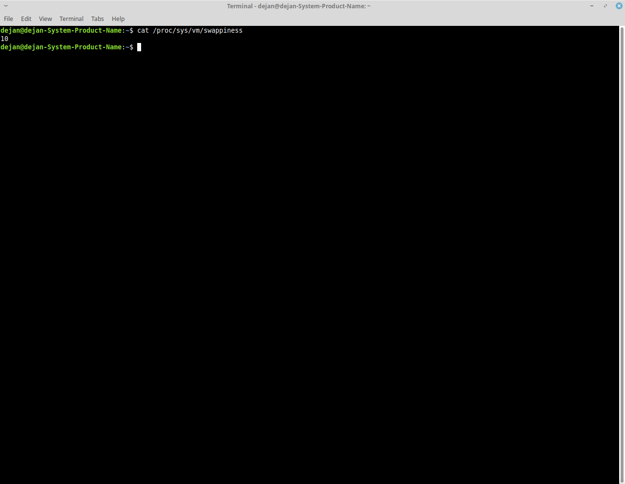 - Controleer daarna even de nieuwe swapneiging in de terminal, met de volgende terminalopdracht (kopieer en plak):