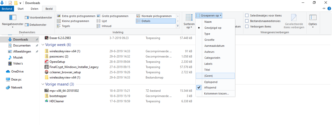 Gegroepeerde weergave Windows Verkenner