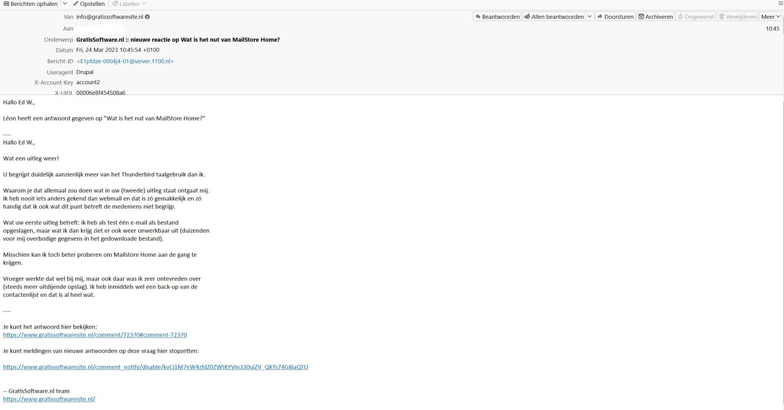 Nu ik Mailstore Home toch aan de gang kreeg (met een „app“-wachtwoord) kwam ik weer terug bij de vraag die boven dit topic staat: Wat is het nut van MailStore Home?