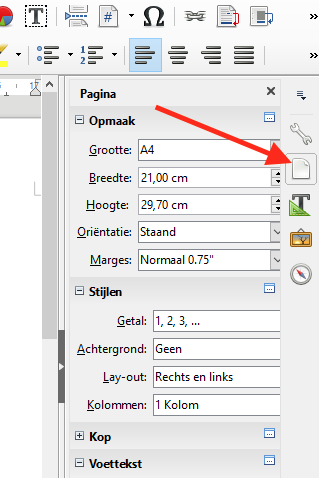 - nieuw item 'Pagina' in zijbalk om snel paginainstellingen te wijzigen (zie afbeelding)
