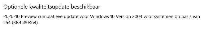 Ik heb hier de Optionele update KB 4580364 2020-10 Preview cumulatieve update Windows 10 2004.