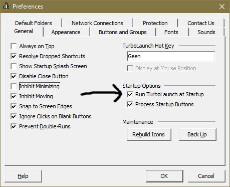 3) Bij Startup Options en Run TurboLaunch at Startup vink je terug aan.