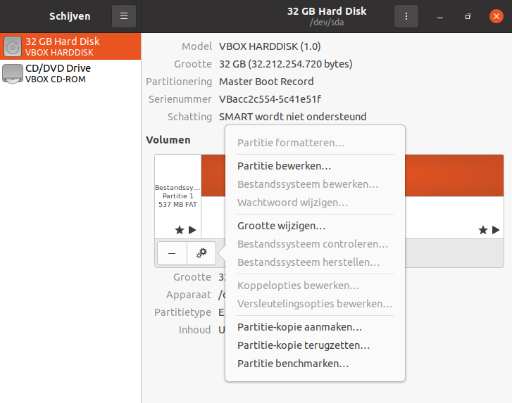 En standaard geïnstalleerd in Ubuntu is het programma Schijven (Disk Utility) voor partitiebeheer en taken als formatteren.