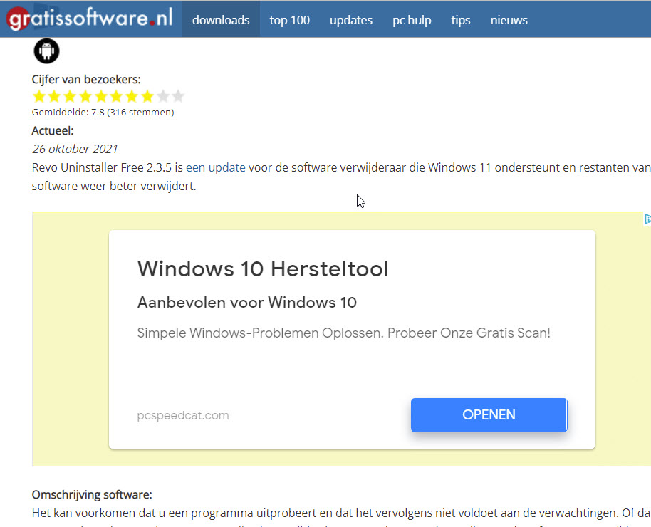Gelukkig doet PC Speed Cat geen schadelijke dingen op je pc. Het is een zogenaamde PUP (potentially unwanted program, potentieel ongewenst programma) die je register scant en dan vraagt om de betaalde versie te kopen om zogenaamde problemen op te lossen. Heel irritant maar niet schadelijk. Met Malwarebytes of AdwCleaner kun je het verwijderen. Of gewoon via Instellingen | Apps en onderdelen in Windows 10.