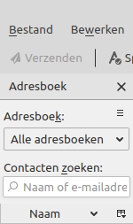 Als je op "Opstellen" klikt, dan zou je dit linksboven moeten zien zoals in de schermafdruk: "Alle adresboeken" en onder "Naam" de namen van je e-mailkontakten, die je dan gewoon kunt dubbelklikken.