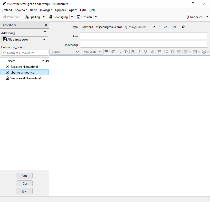 1. klik op Opstellen in Thunderbird om een nieuw mailtje te beginnen