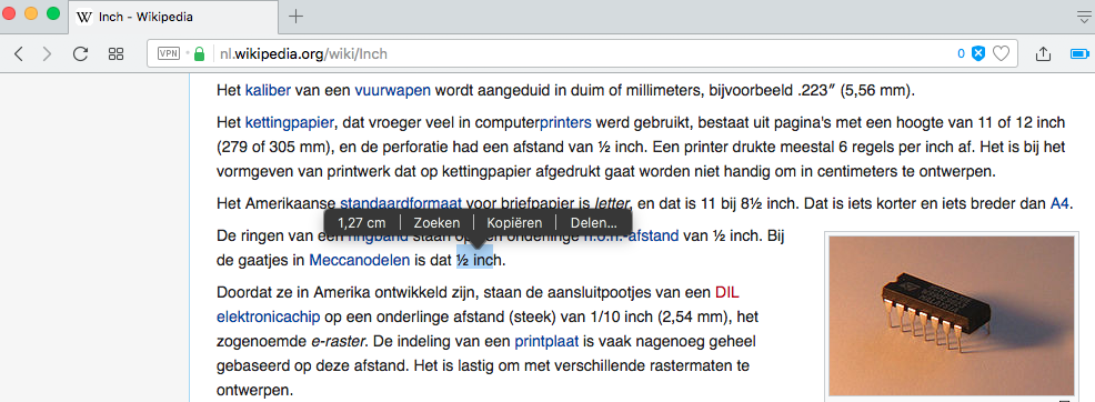 Handig: selecteer tekst en Opera converteert de eenheid gelijk