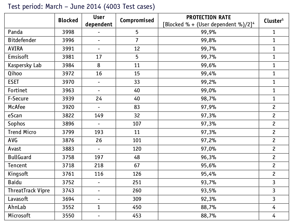 Andere populaire virusscanners als AVG en avast! blokkeerden zo'n 97% van de malware, maar lieten dus toch ruim 100 virussen door. Bekijk verder de afbeelding voor de overige resultaten.