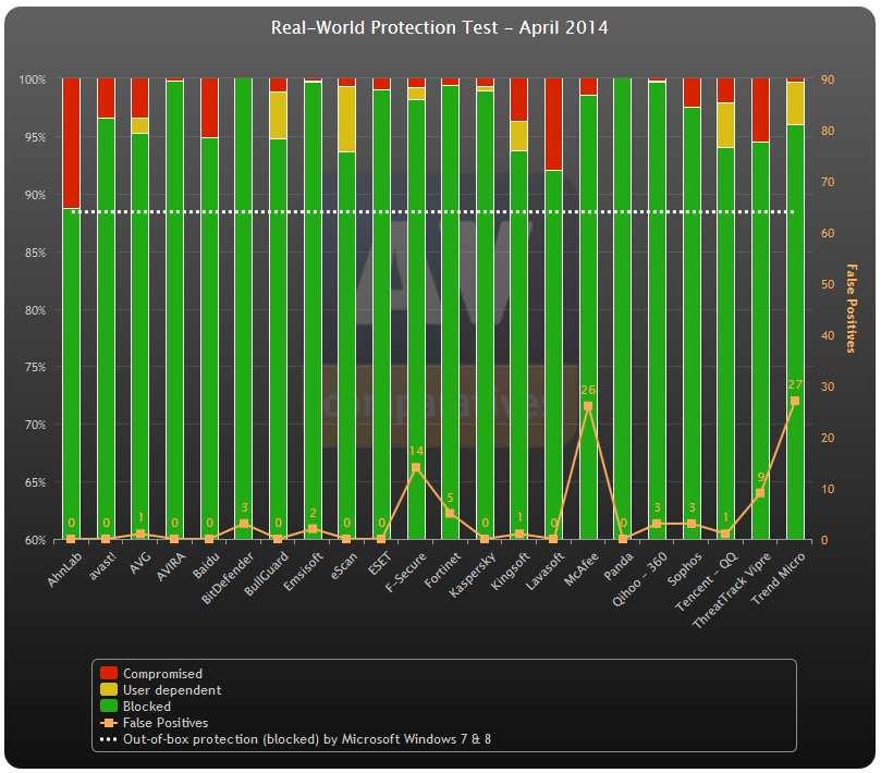 Volgens mij geeft de grafiek aan dat Bitdefender drie valse positieven gaf, tegen nul voor Panda. Het blijft echter een moment opname. Belangrijk is of Panda dit niveau de komende maanden gaat volhouden.