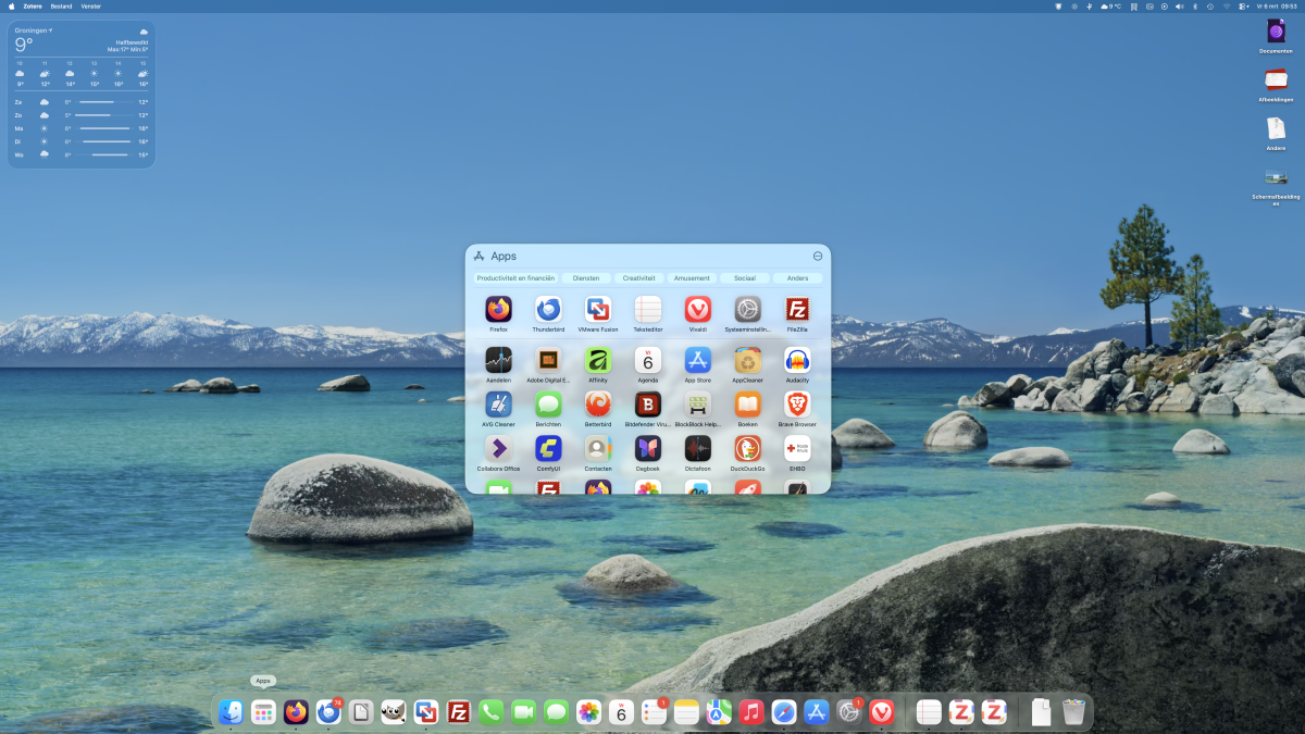 Een duidelijk verschil met Windows is wel dat je in macOS geen app-icoontjes op het bureaublad kunt zetten: dit is alleen voor bestanden (en widgets). En het systeemvak en menu staan in de balk bovenaan.