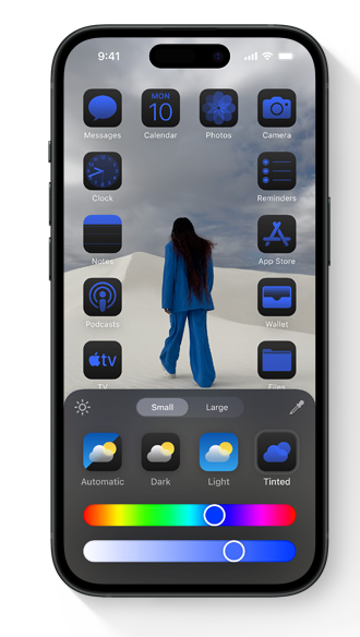 - Op je beginscherm kun je de app icoontjes en widgets overal neerzetten waar je wilt (niet meer alleen op het raster) en alle kleuren geven die je wilt (ook donkere modus)