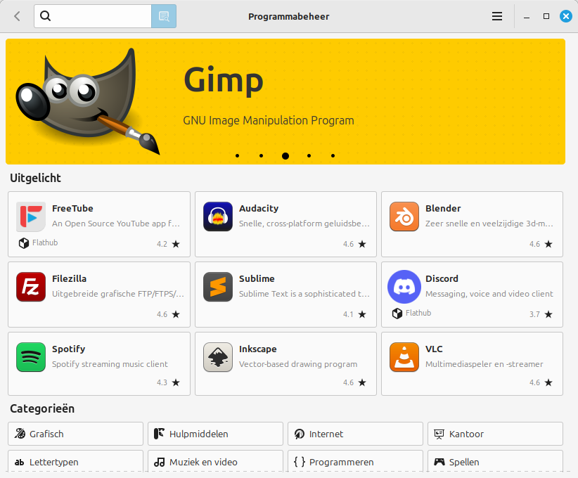 Enkele apps die je gratis kunt downloaden via Programmabeheer in Mint