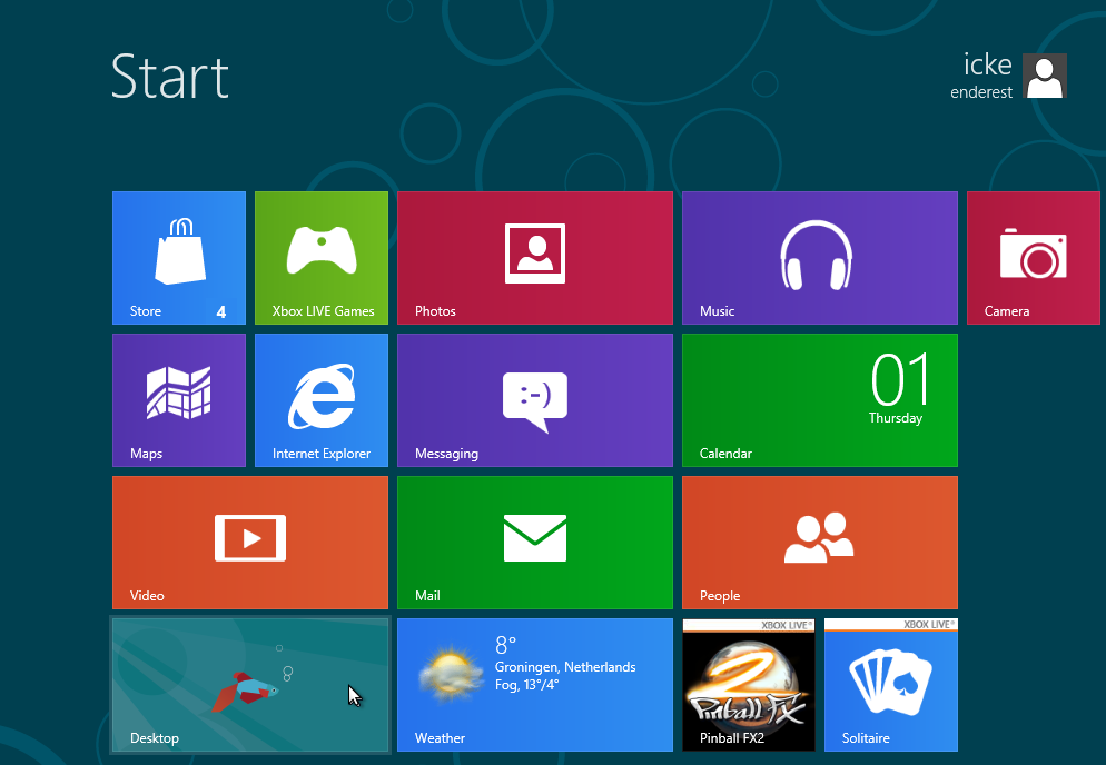 Toch hebben lang niet alle besturingssystemen een startmenu. Windows 8 had natuurlijk het startscherm met gekleurde tegels: