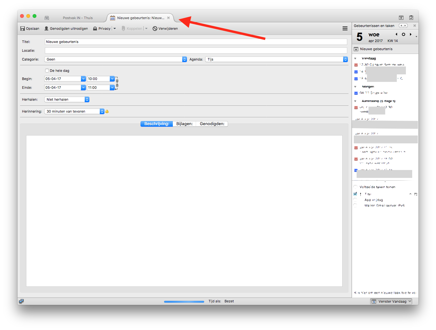Dan open je nieuwe gebeurtenissen in een tabblad: