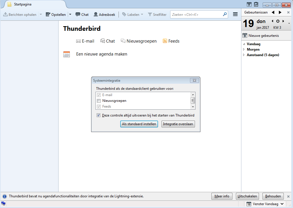 6. Klik weer op Als standaard instellen als je Thunderbird als standaard mailprogramma wilt gebruiken (en dus Thunderbird opent als je een mailtje wilt versturen)
