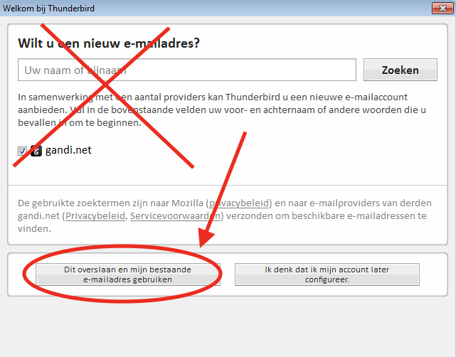 7. Let nu even goed op! Je wilt geen nieuw e-mailadres aanmaken, maar je wilt natuurlijk je bestaande mailadres gebruiken! Klik dus op Dit overslaan en mijn bestaande e-mail adres gebruiken.