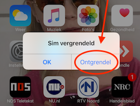 Als je per ongeluk al OK hebt geklikt bij het Sim vergrendeld venster dan kun je door de Telefoon-app te openen en een telefoontje te beginnen of je iPhone opnieuw op te starten het ontgrendel-venster weer oproepen (en dan wel Ontgrendel kiezen).