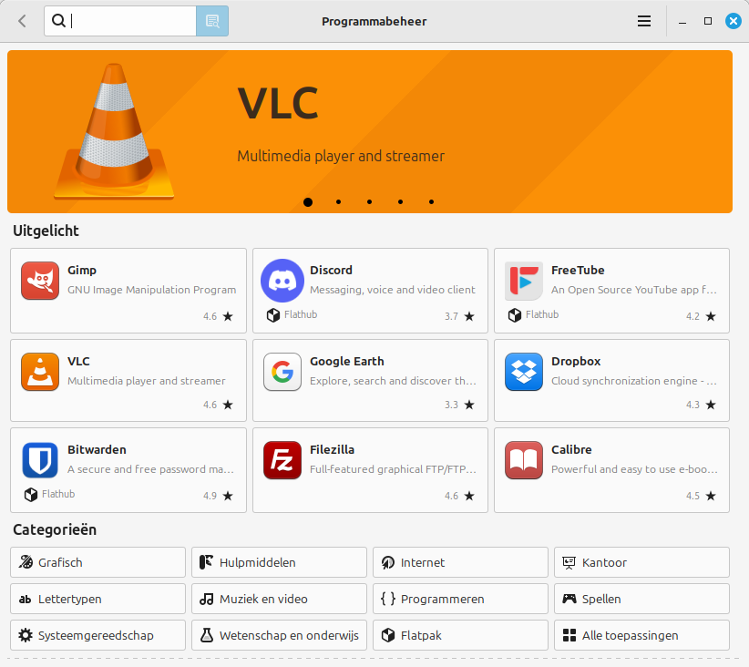 De software winkel van Linux Mint met duizenden gratis apps