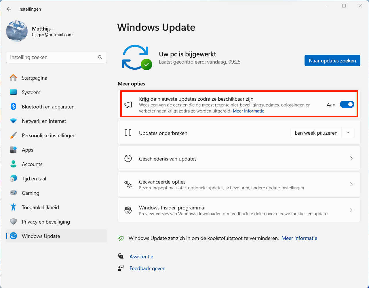 Vanaf nu krijg je als eerste de nieuwste updates aangeboden en worden nieuwe functies als eerste ingeschakeld voor Windows 11.