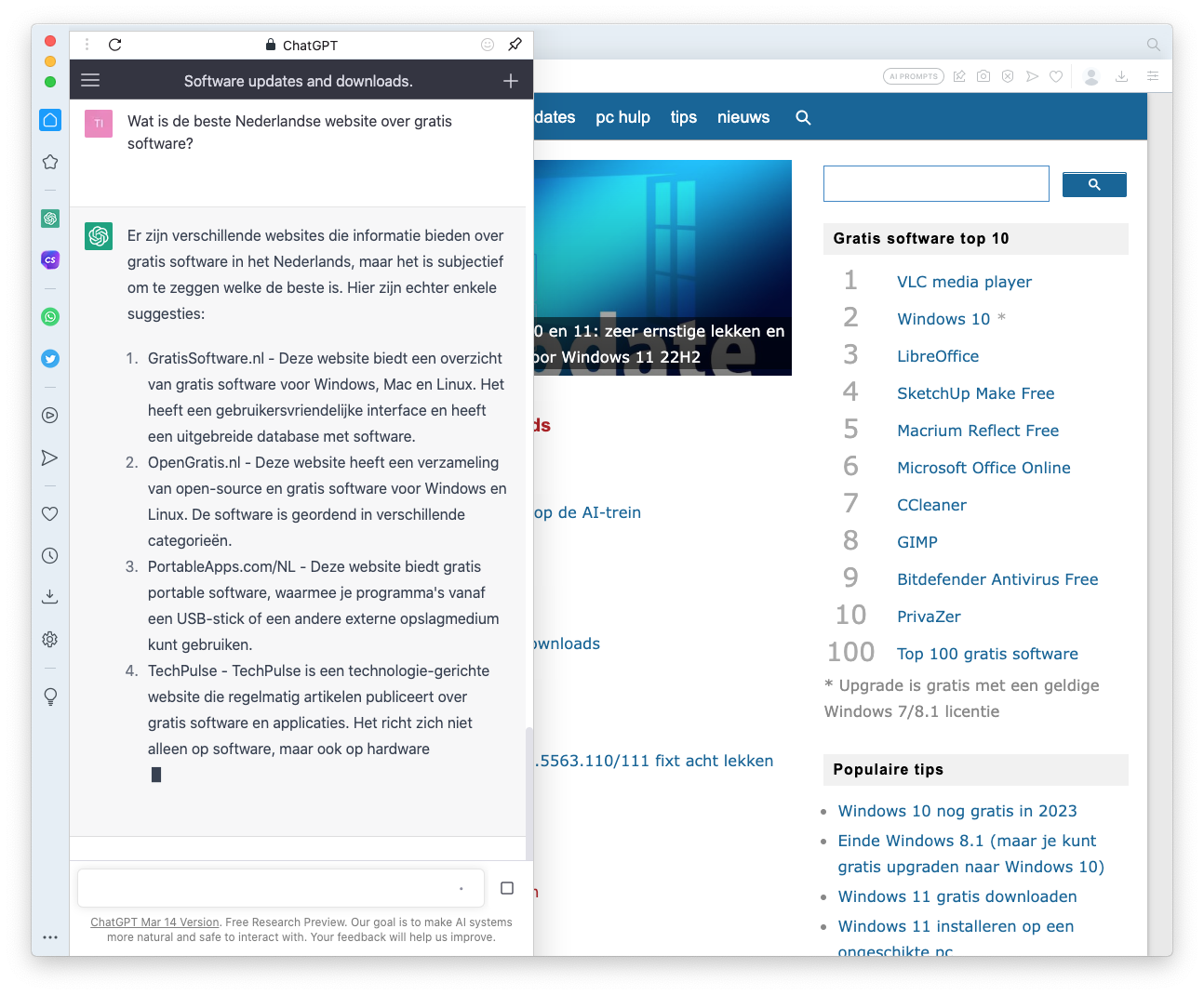 En wie vindt ChatGPT de beste Nederlandse website over gratis software? ;-)