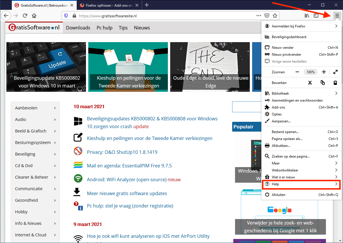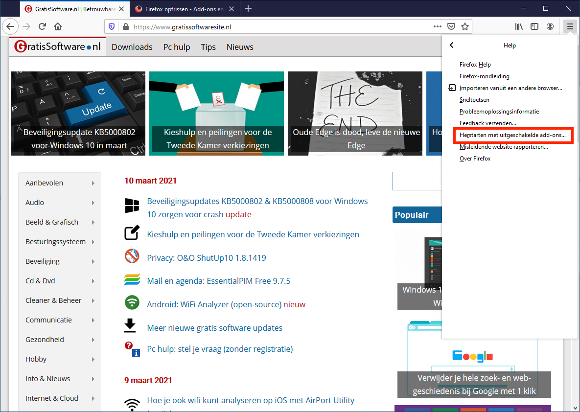 - Ga naar drie-streepjes-menu | Help | Herstarten met uitgeschakelde add-ons