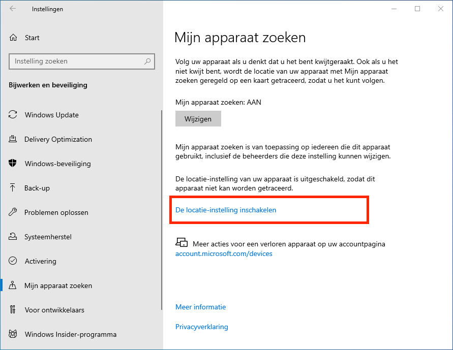 1. Zet Mijn apparaat zoeken aan in Windows 10