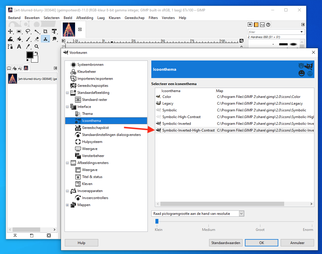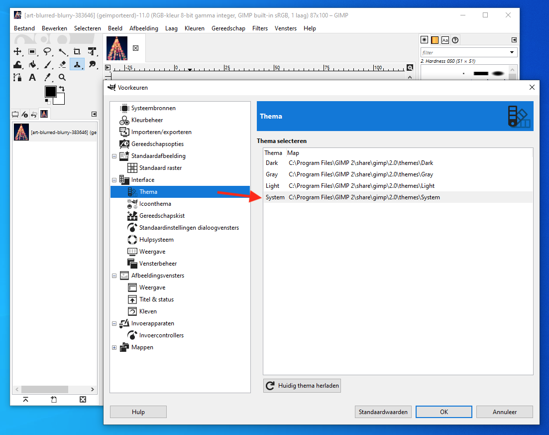 Hoe kun je een licht thema instellen in fotobewerker GIMP?